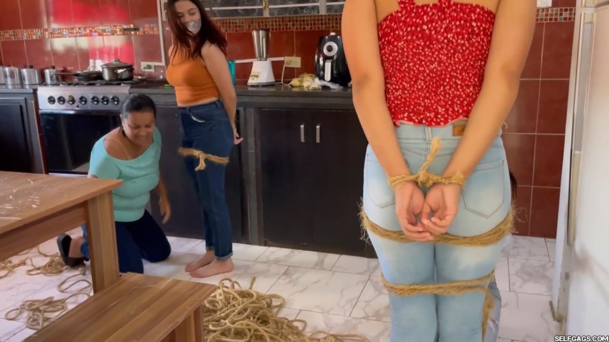 3 women (Khloe, Xandra & Laika Labado) are bound and gagged with rope and ballgags. The muzzled bondage chicks are hogtied helpless and have clear tape wrapped over their foreheads to the back of their bare feet. The gagged ladies squirm as an escape attempt, but it is all just futile struggles! From SELFGAGS studio on Clips4sale.