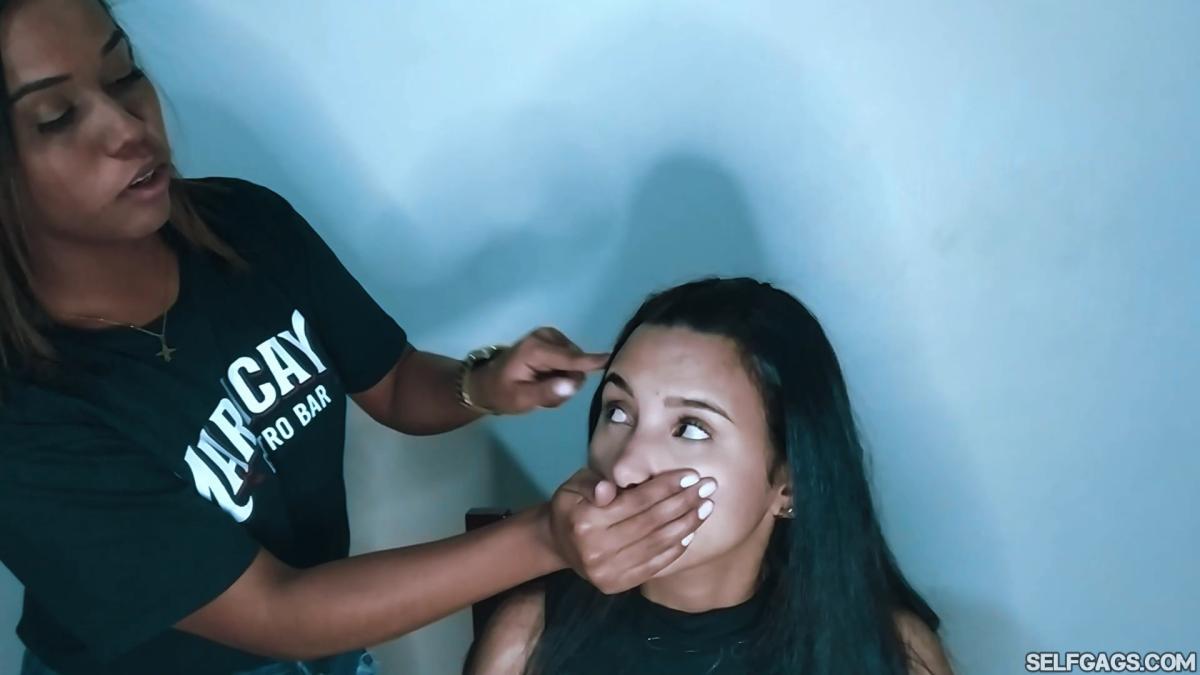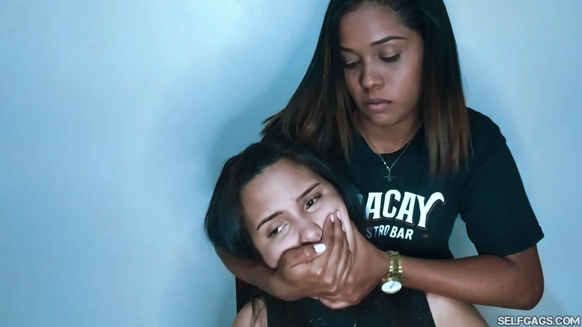Sexy Stephanie Moreno did such a wonderful job hand gagging her real-life roommate Ariana Gonzalez that we asked her to find another girl to shut up. Her name is Ibet and she is such a cutie! As with Ariana, Stephanie did an amazing job to handgag and handsmother innocent Ibet for a full 12 minutes! Sexy as hell!