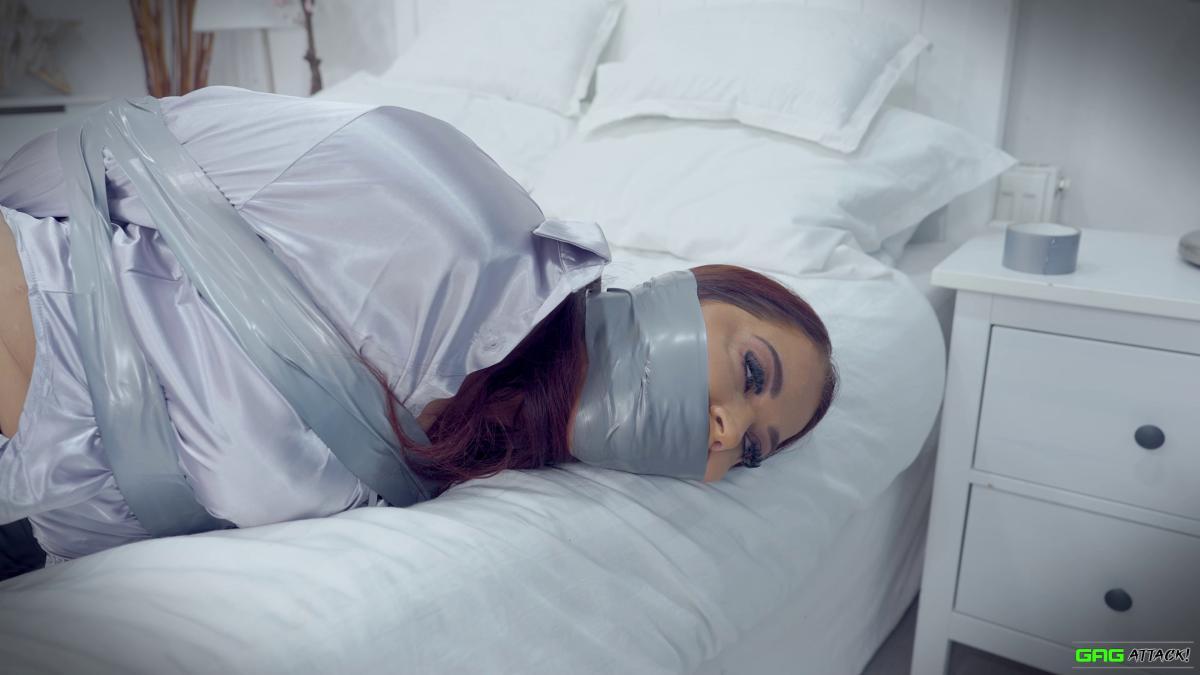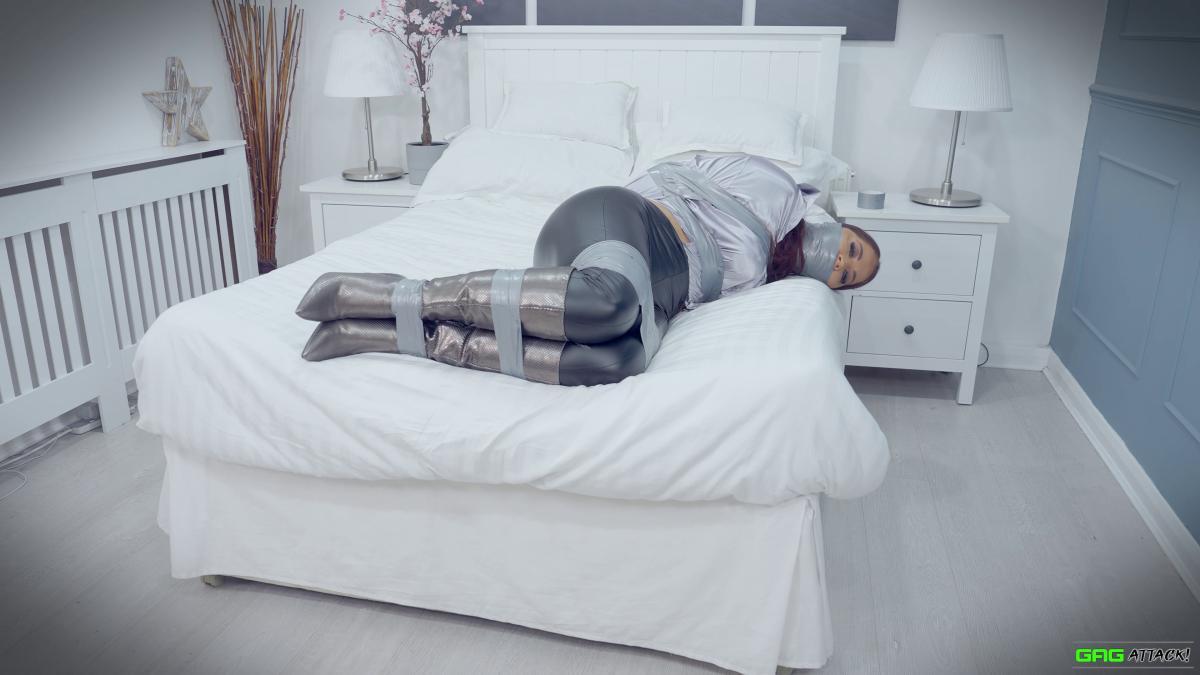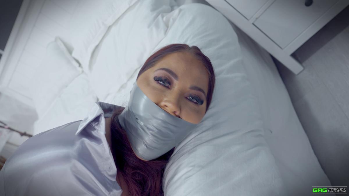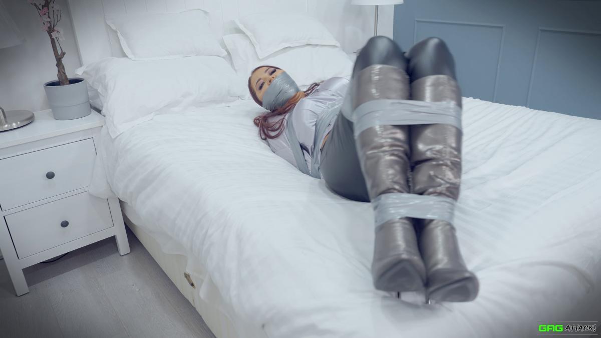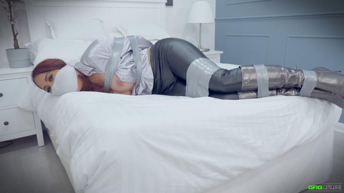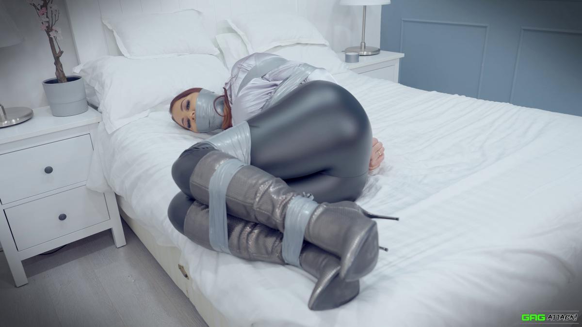 Hot Jacqui Ryland is a boss lady tied up and gagged in tight leather pants and long boots! The helpless boss lady also has her tits exposed for sexy topless bondage! From Gag Attack Bondage at Clips4sale.