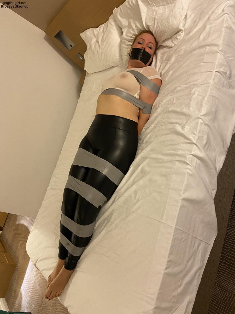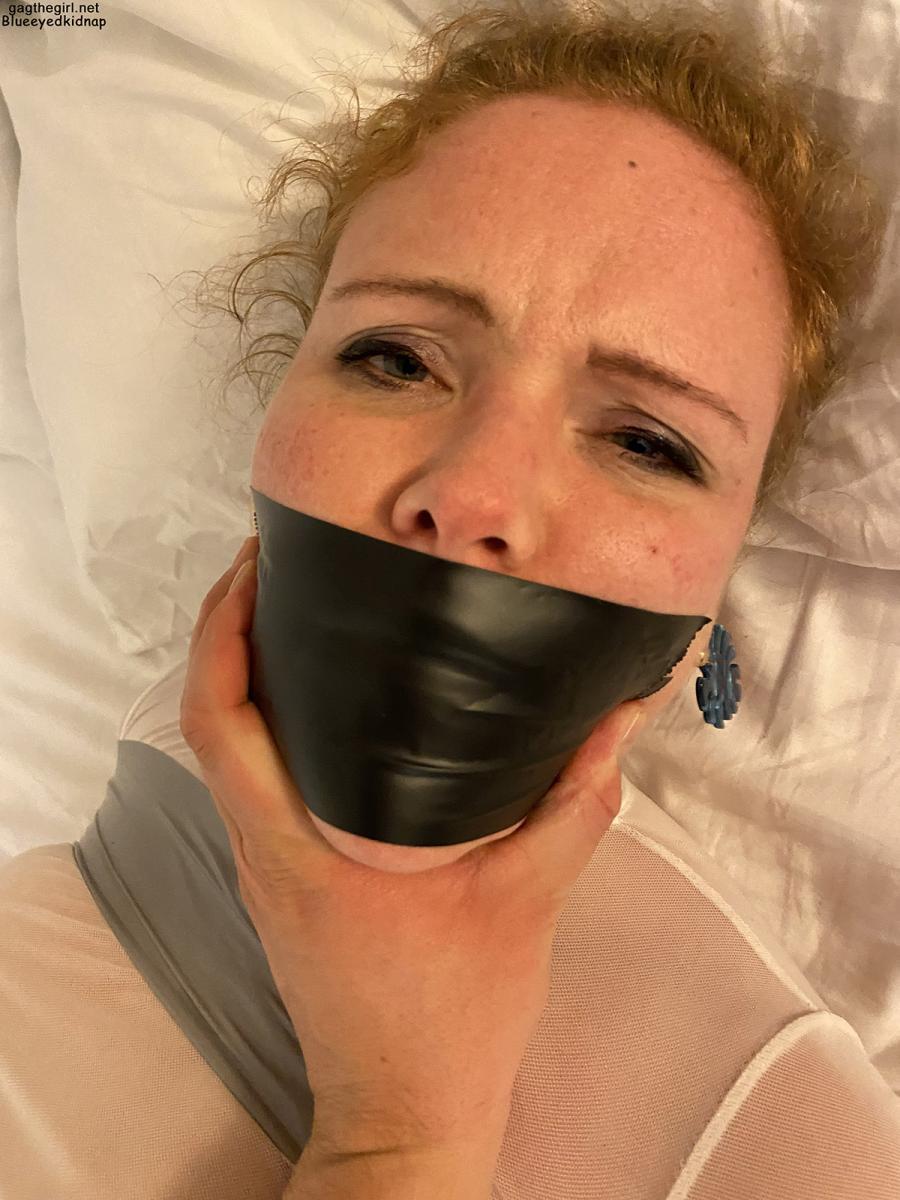 Danish May is a sexy redhead wearing a white shirt revealing her beautiful boobs underneath. She is all tied up with grey PVC tape and gagged with black duct tape in her hotel room where she is left barefoot and struggling against her bondage! From Blueeyedbondage.
