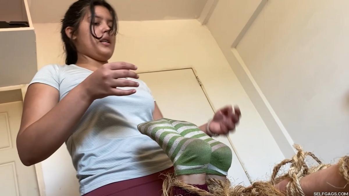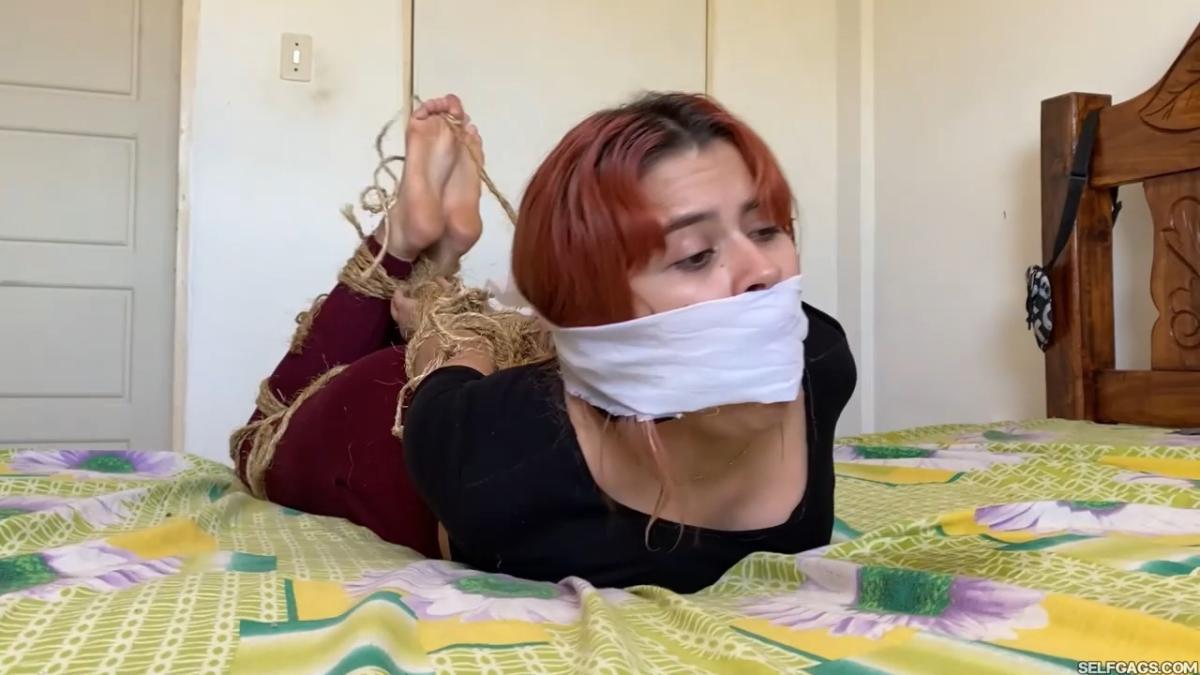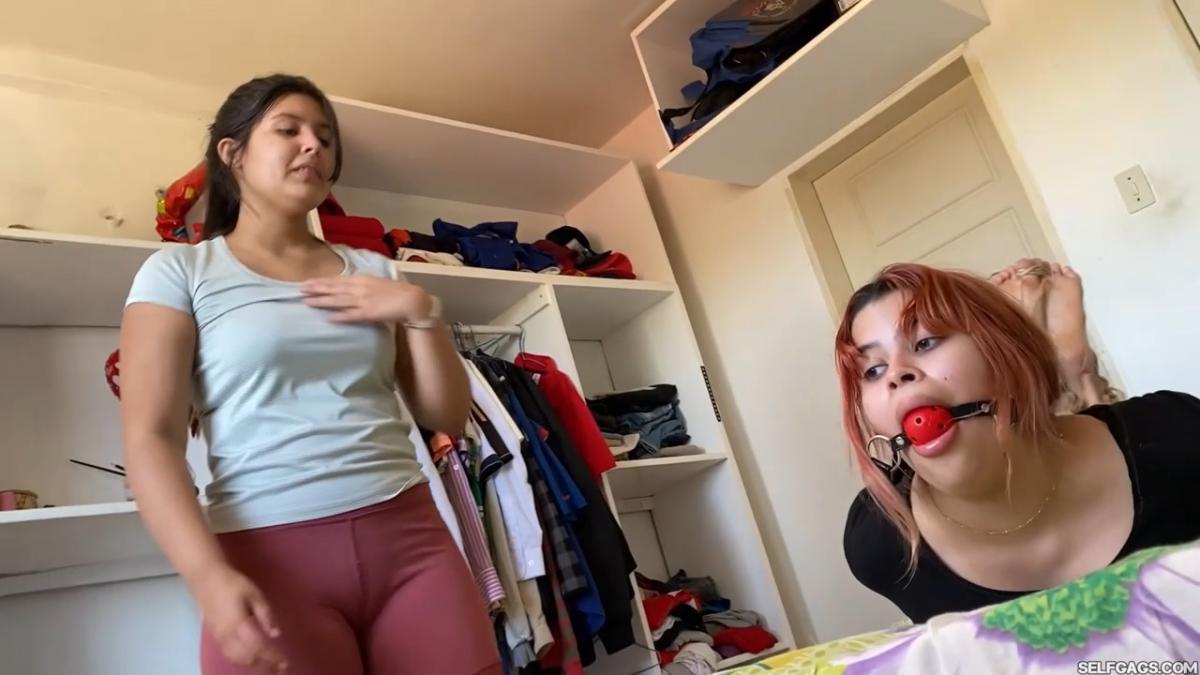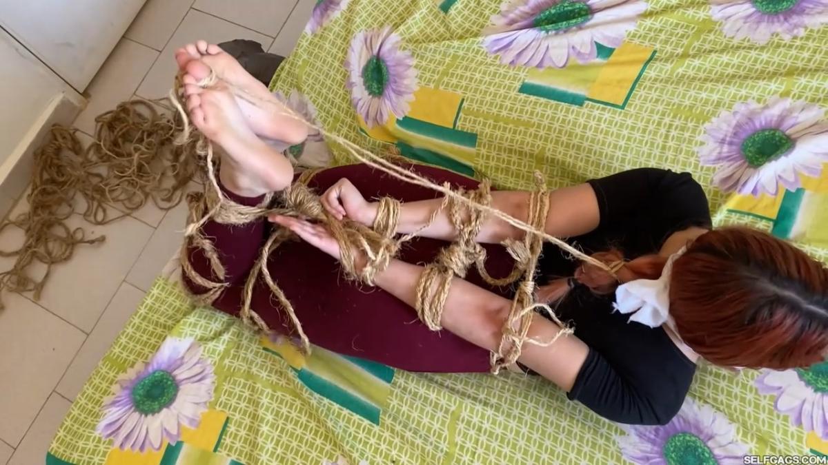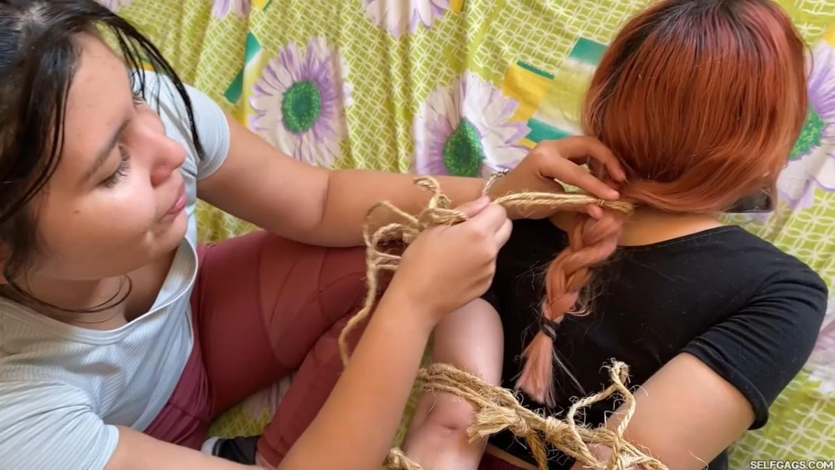 Xandra has never been tied up with rope before and she has heard Mary Macaya is good at it. Xandra wants to try to rope bondage and Mary is happy to help. Mary ties Xandra’s hands behind her back and her elbows together, puts a red ball gag in Xandra’s mouth and locks it tight. Mary leads the rope bound and gagged girl up the stairs and into a bedroom where she proceeds with tying her up! From SELFGAGS studio on Clips4sale.