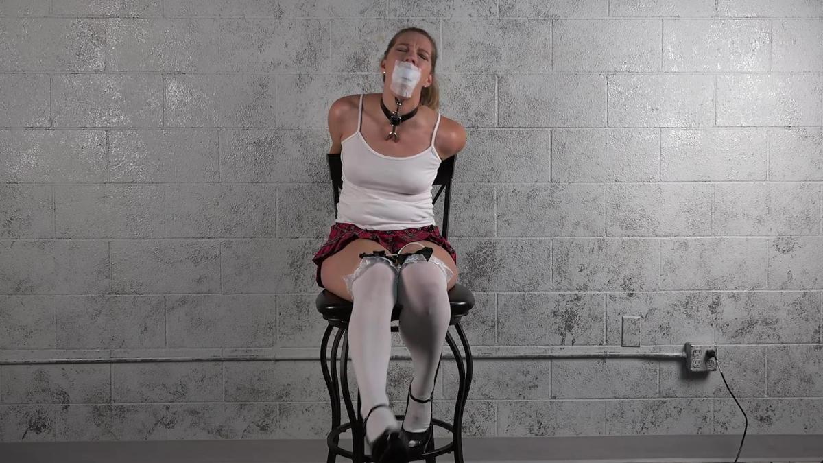 Erin is a bound schoolgirl gagged, and made to suffer in silence as the cruel heretic’s fork keeps her head locked in place. With her mouth stuffed and sealed shut with layers of sticky medical tape, and her limbs zip-tied and cuffed, she can only squirm and obey as the bondage torture unfolds. From GAGGED GIRLS Studio on Clips4sale.