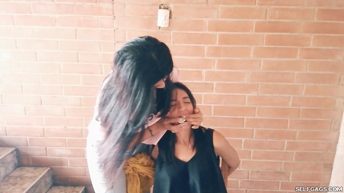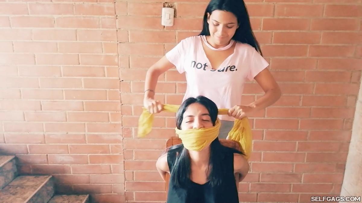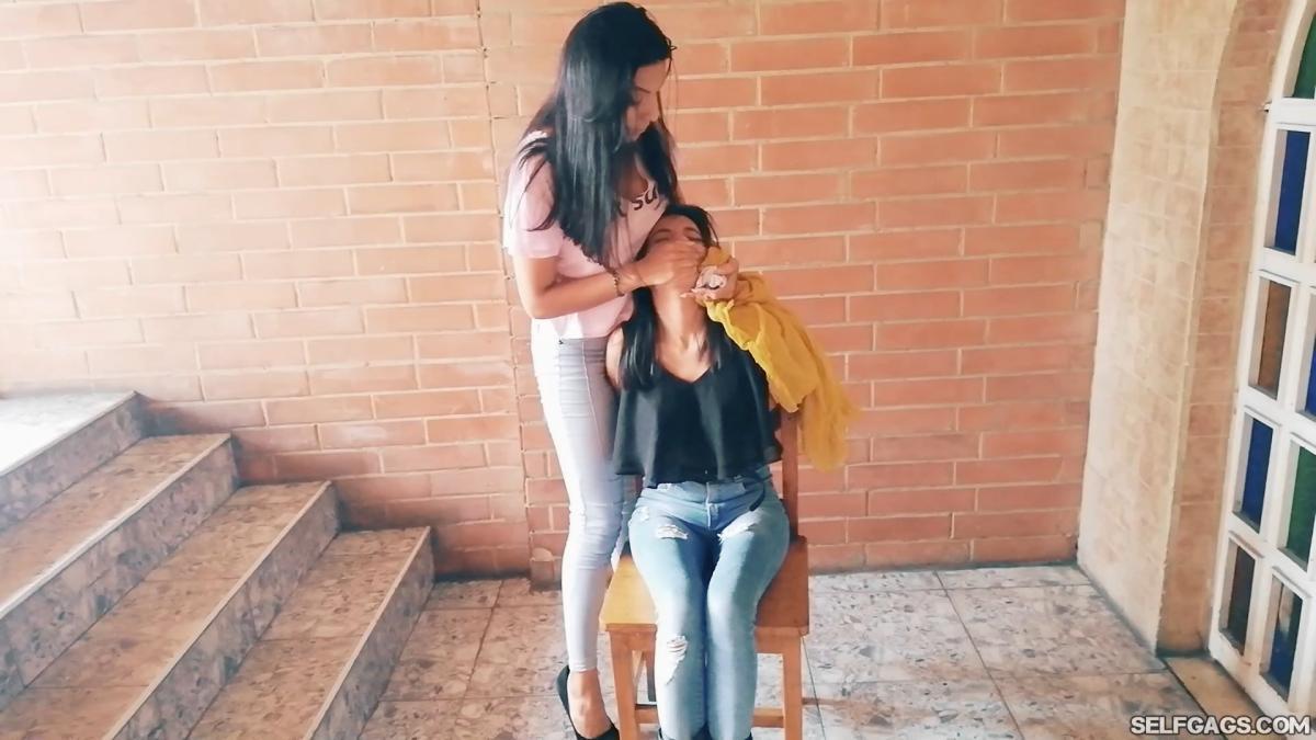 The girls’ bondage audition turned out to be an extremely sexy video in which they take turns to have each other tied up on a chair, screaming for help and getting gagged by the other!