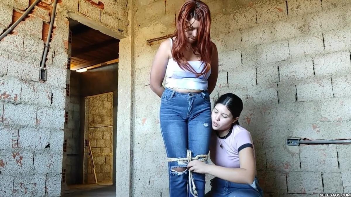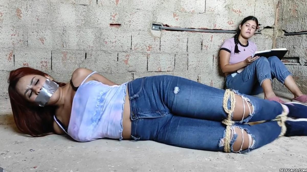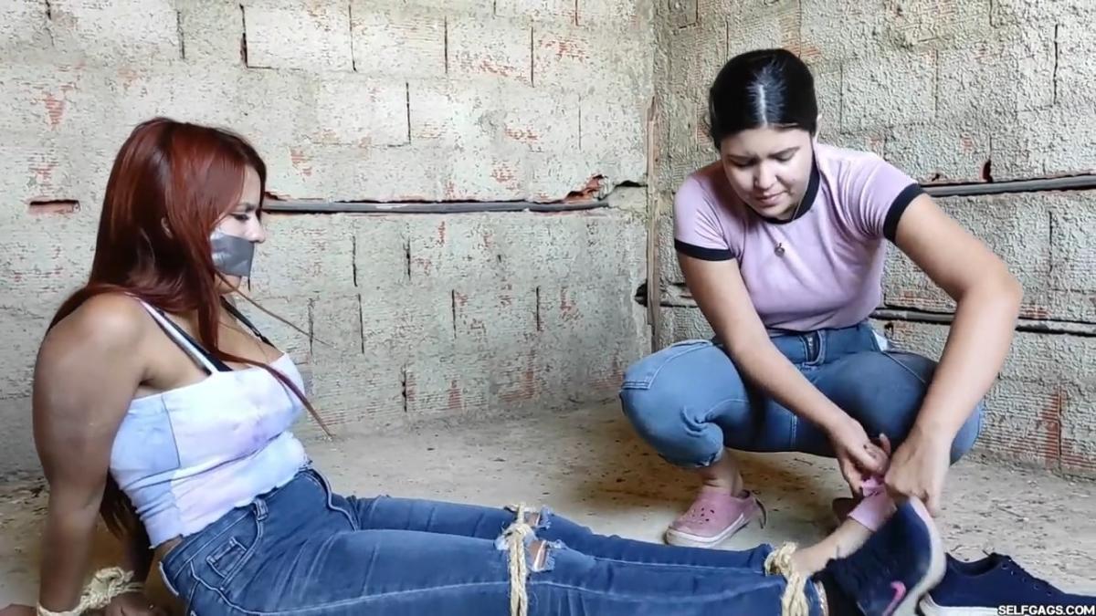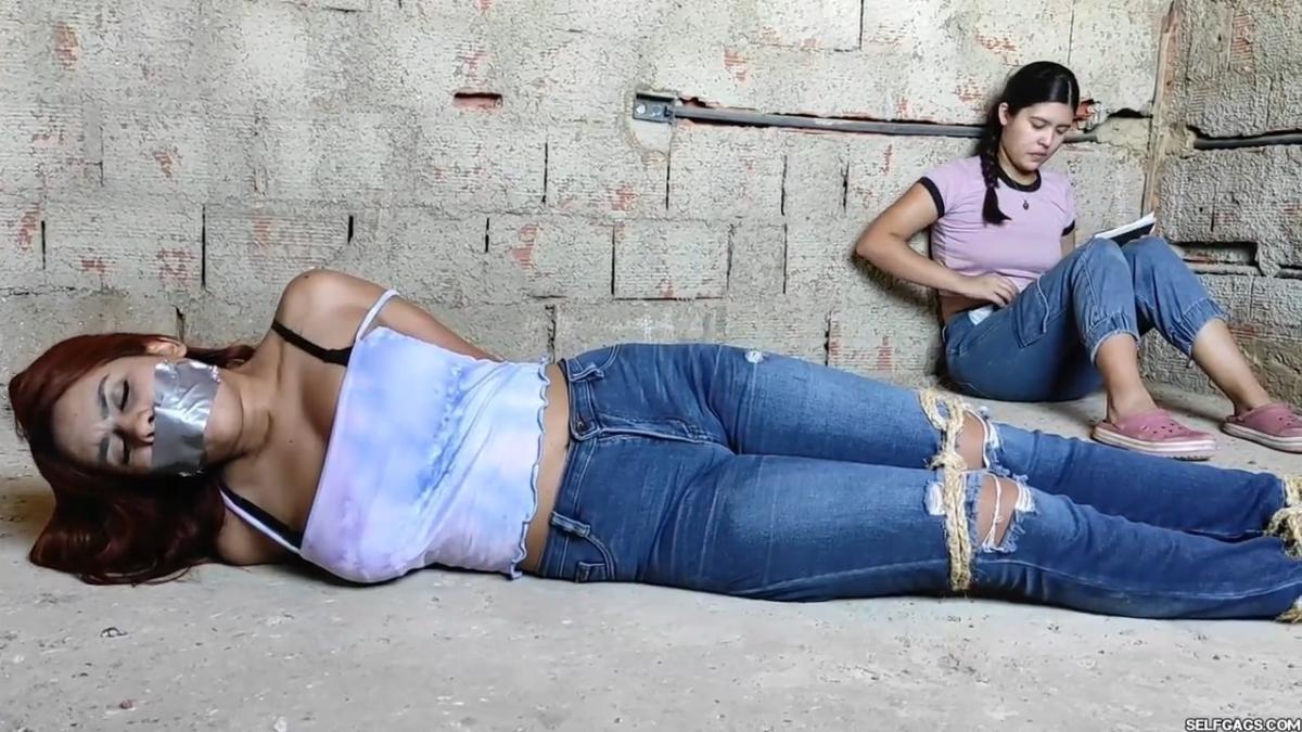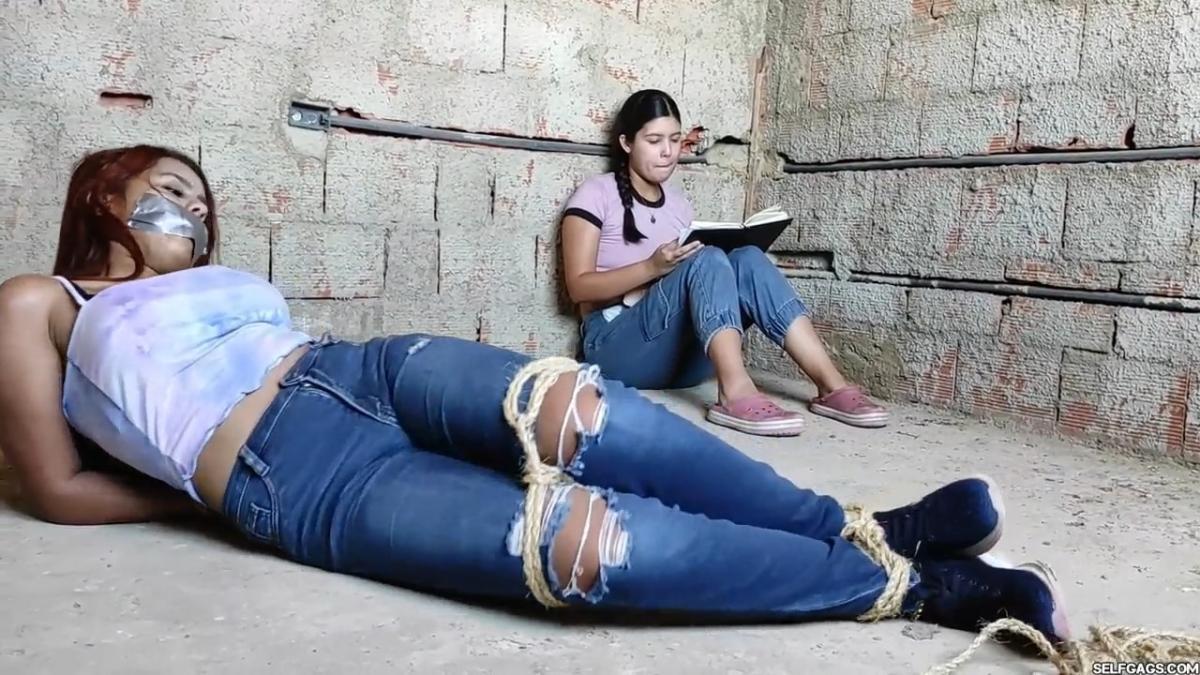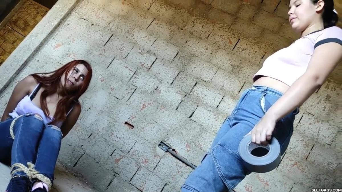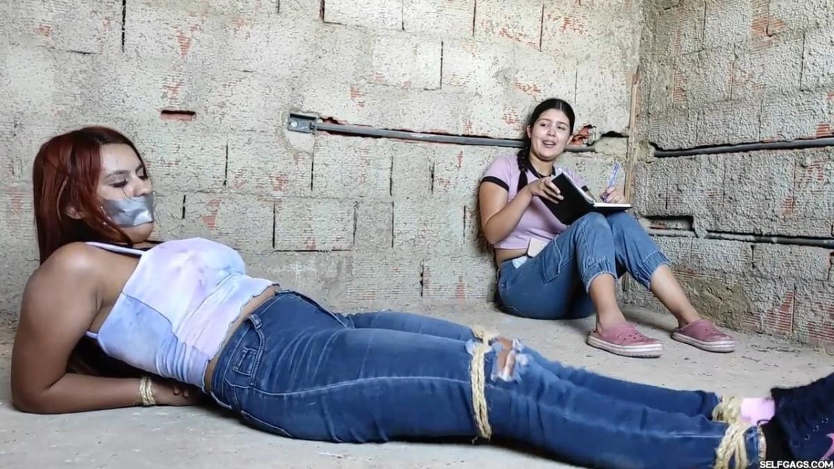 Mary Macaya and Laika Labado dive into prison history kink! In a creepy abandoned jail, they find rope and duct tape, sparking filthy fun. Mary ropes Laika’s wrists and legs tight, stuffs her mouth with tape gag, making her drool like a needy bitch while snapping pics. Squirming slut moans muffled, pussy wetting as they recreate prisoner torment for their project. Erotic gagged whore vibes for bondage fans. From Clips4sale Selfgags studio.