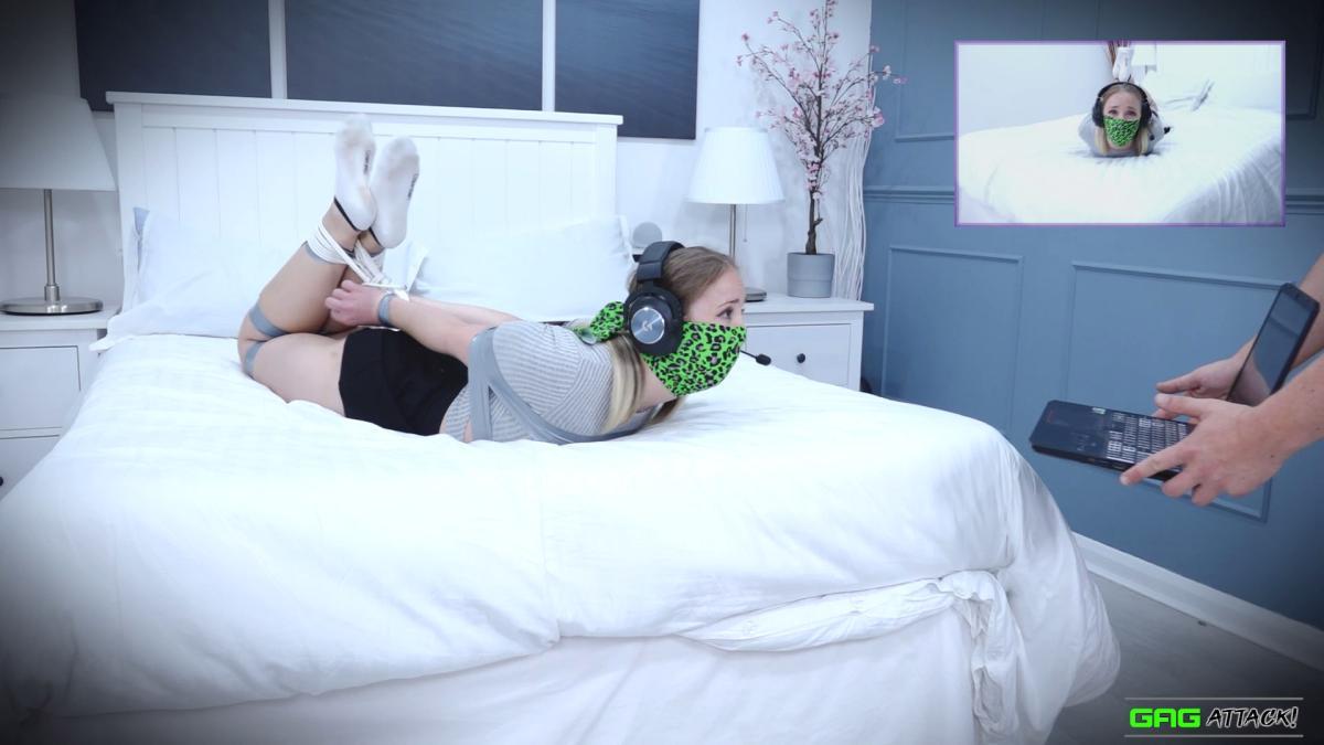 Sexy Lil Missy UK is live streaming from her bedroom when one of her crazy viewers breaks in! The sexy live streamer is tied up by the viewer and gagged in many different ways: panty gagged, clear packing tape gagged, tegaderm tape gagged and OTM/OTN gagged! She is finally hogtied with her headset and microphone on, mmmpppphing into her gag for all her other viewers to hear! From Gag Attack Bondage at Clips4sale.