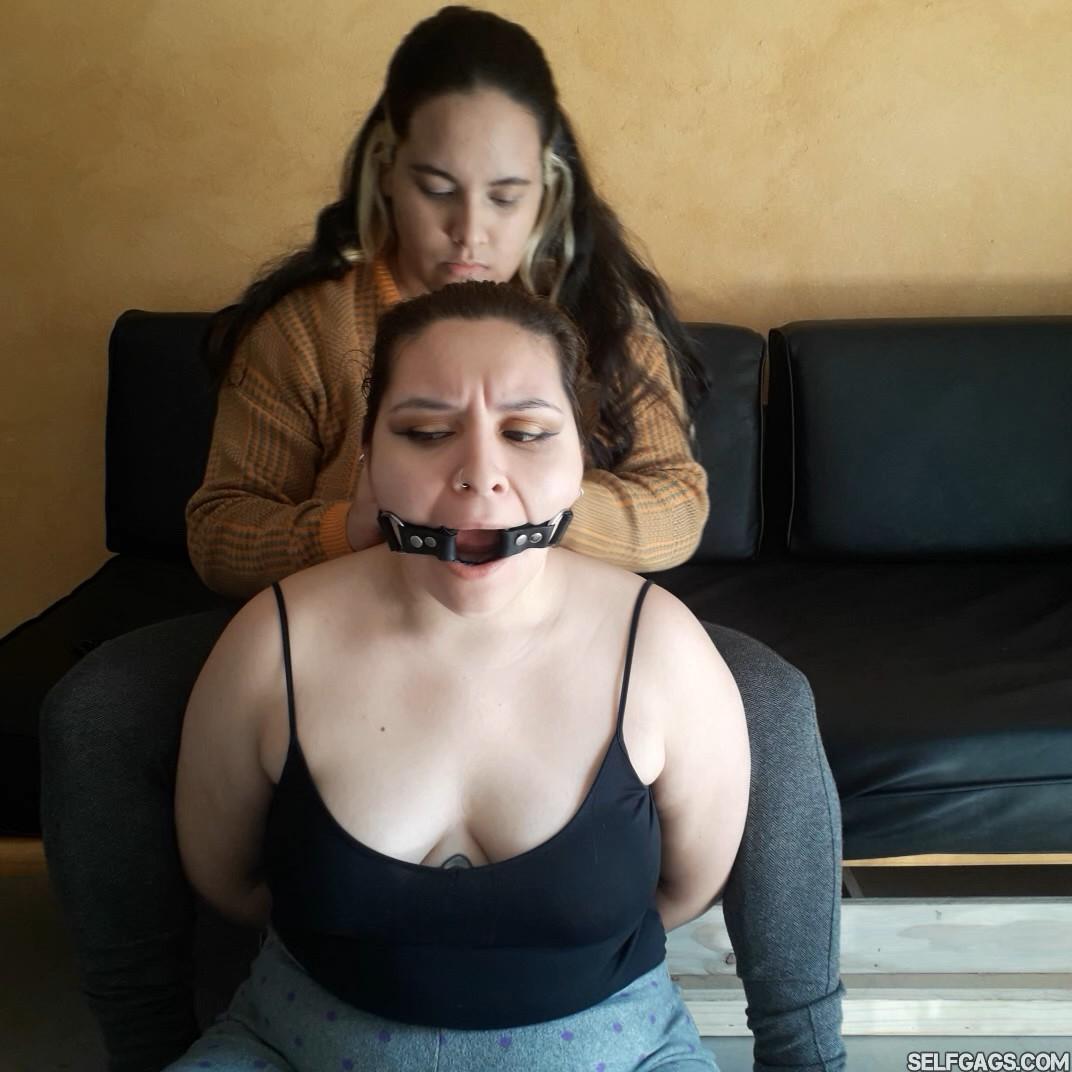 Penelope is going to be ring gagged by Paulina who will take time on her friend while holding a measuring cup below her chin to catch all of her dripping drool.