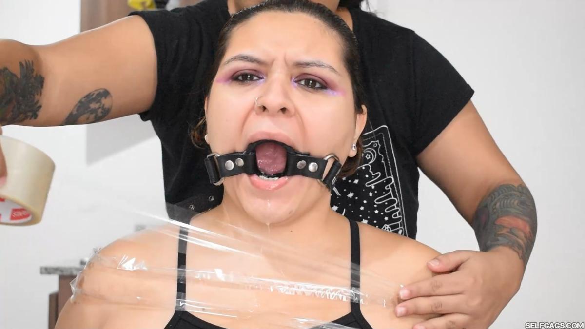 Penelope Rose is in for a humiliating slave training session as her real-life roommate, Paulina, ties her hands behind her back and gags her with an open-mouth ring gag that instantly causes her to drool!