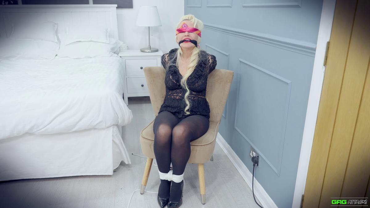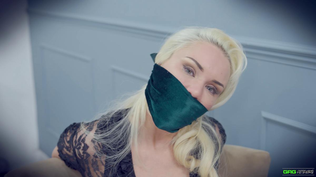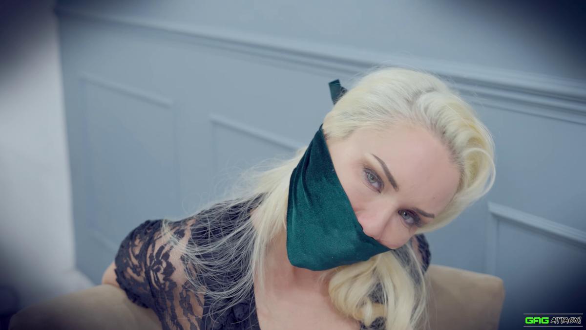 Ashley Jaymes is grabbed mid-laptop session and gagged with pantyhose, cleaves, sponge ball, duct tape, and finally a panties-stuffed layered gag. Tied up, blindfolded, and left to struggle helplessly, she mmmphs and writhes in futility, totally at the mercy of her captor. Her cries are muffled, her body bound tight—and escape is not an option. From Gag Attack Bondage at Clips4sale.