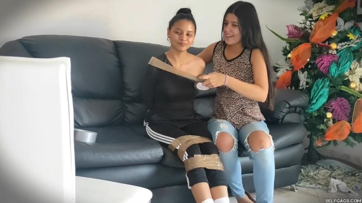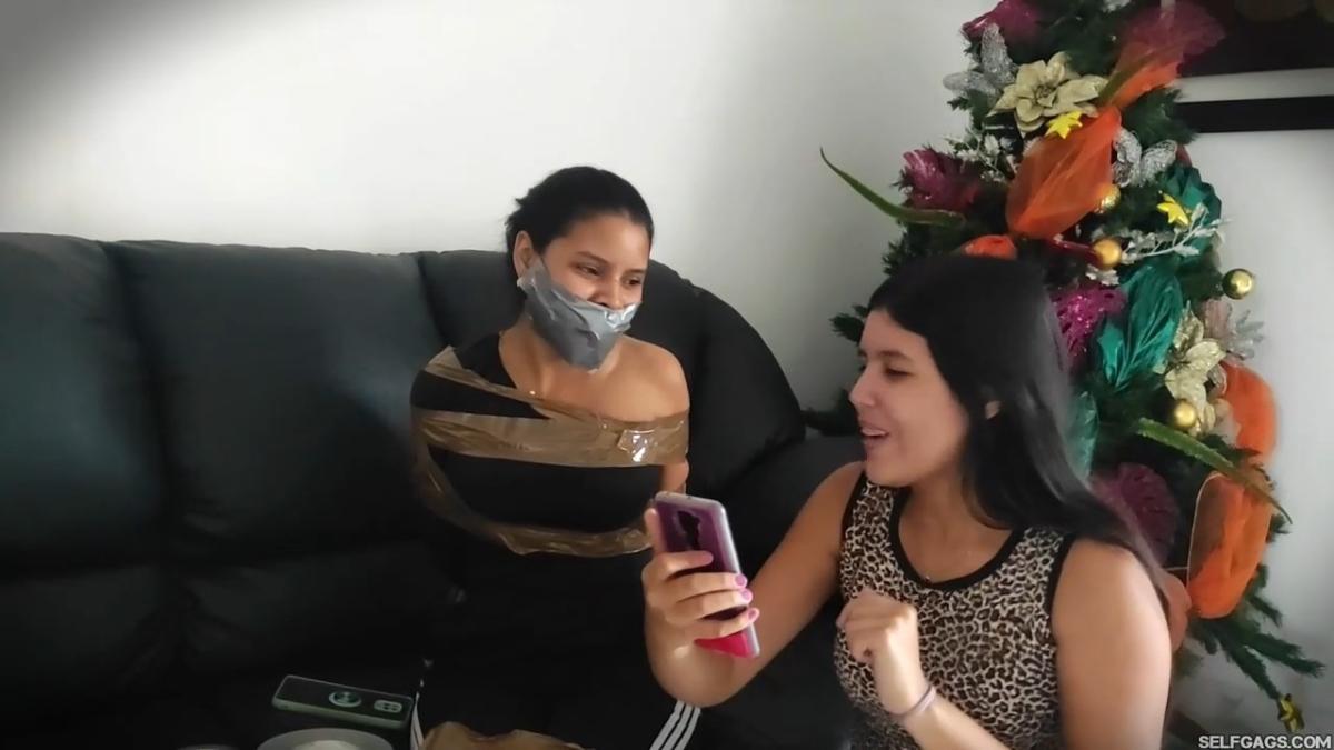 A girl just discovered a new app where random people give fun challenges to do with friends! She tells her best friend about the app and convinces her to try a challenge session where the best friend ends up bound and gagged with her own sweaty socks taped in her mouth!