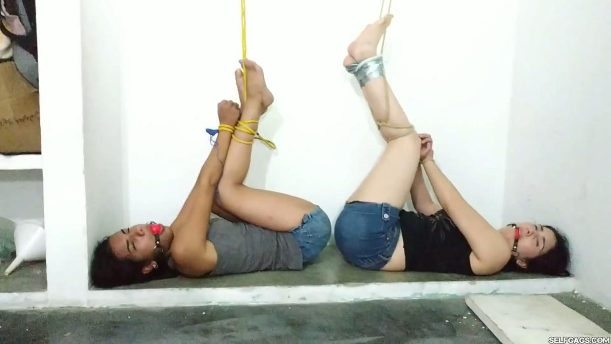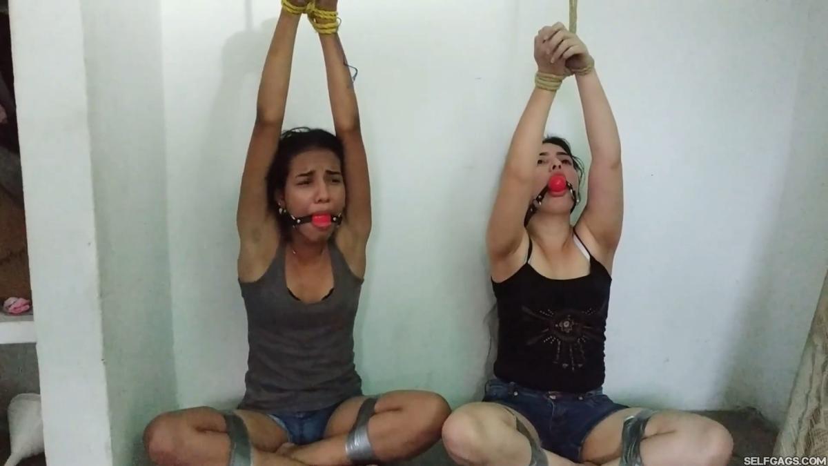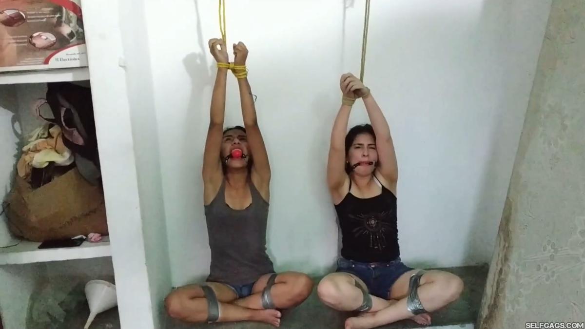 Two silly Latina sisters, Katherine and Maria, are caught looking for an important USB stick in an attic. The snooping girls pay the price by being uncomfortably tied up and ball gagged together!
