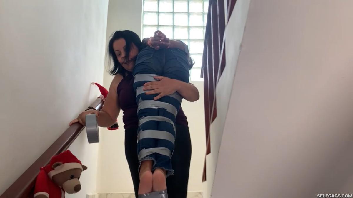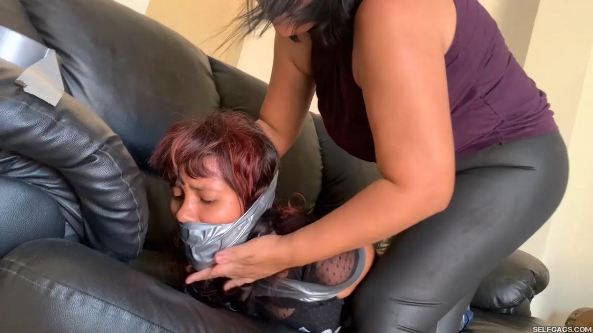 18-year-old Penelopé Garcia has been a bad girl! She has backtalked her mom without knowing the consequences thereof. So during a quiet afternoon of relaxation, Penelopé is grabbed for a rough gagging and tough time in strict tape bondage in order to be properly disciplined by her dominant mother!