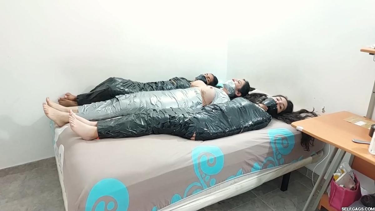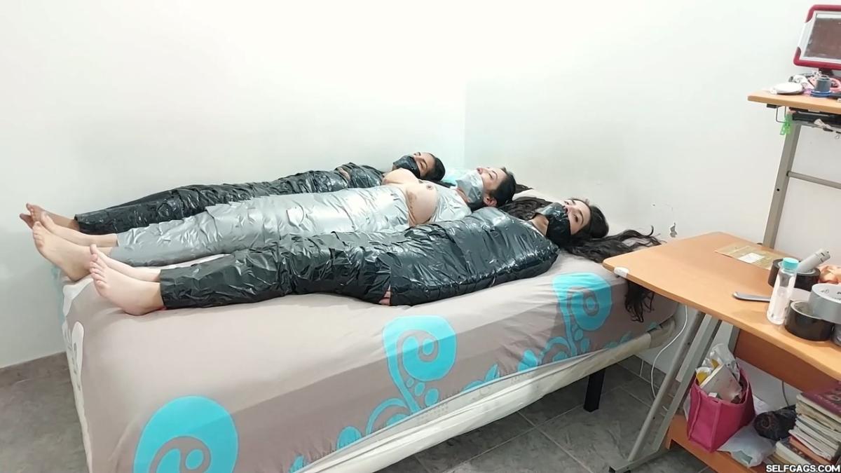 HomeBondageMummification BondageThree Struggling Bondage Mummies - Selfgags