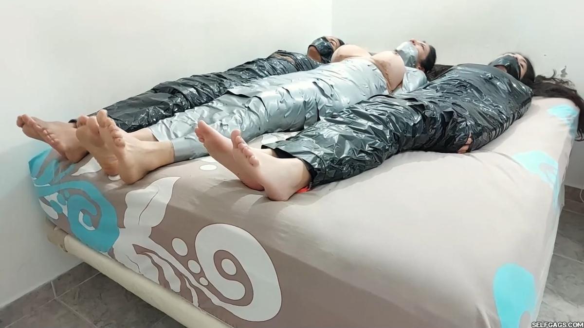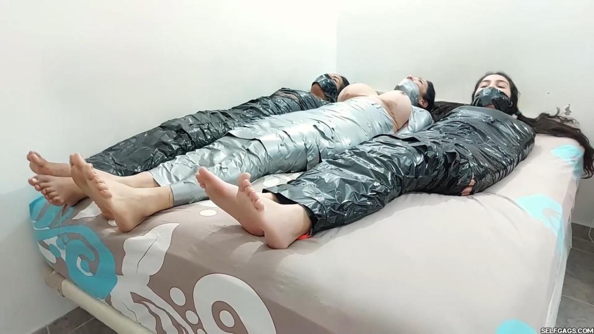 Three Struggling Bondage Mummies – Selfgags
