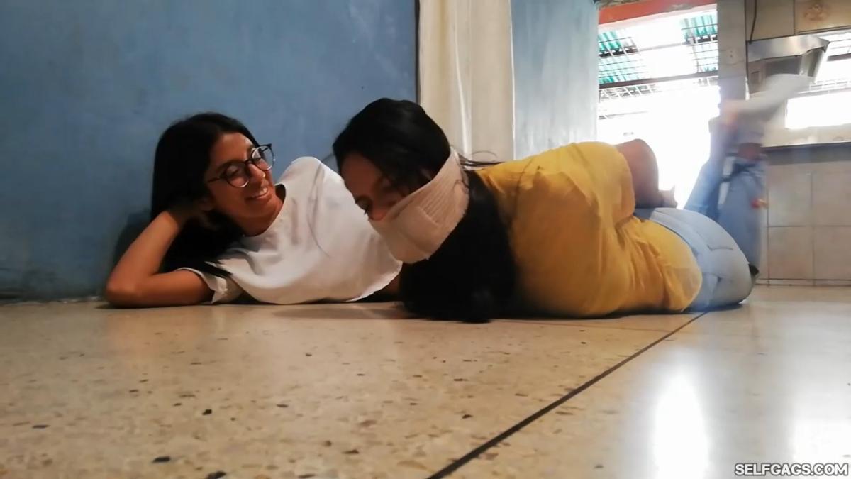 Another support wrap is then tied around Camila’s sock gagged mouth and over her nose by Alexandra to make her an over-the-nose gag. Camila is then hogtied on the floor by Alexandra, who then shows bound and helpless Camila total dominance and supremacy!