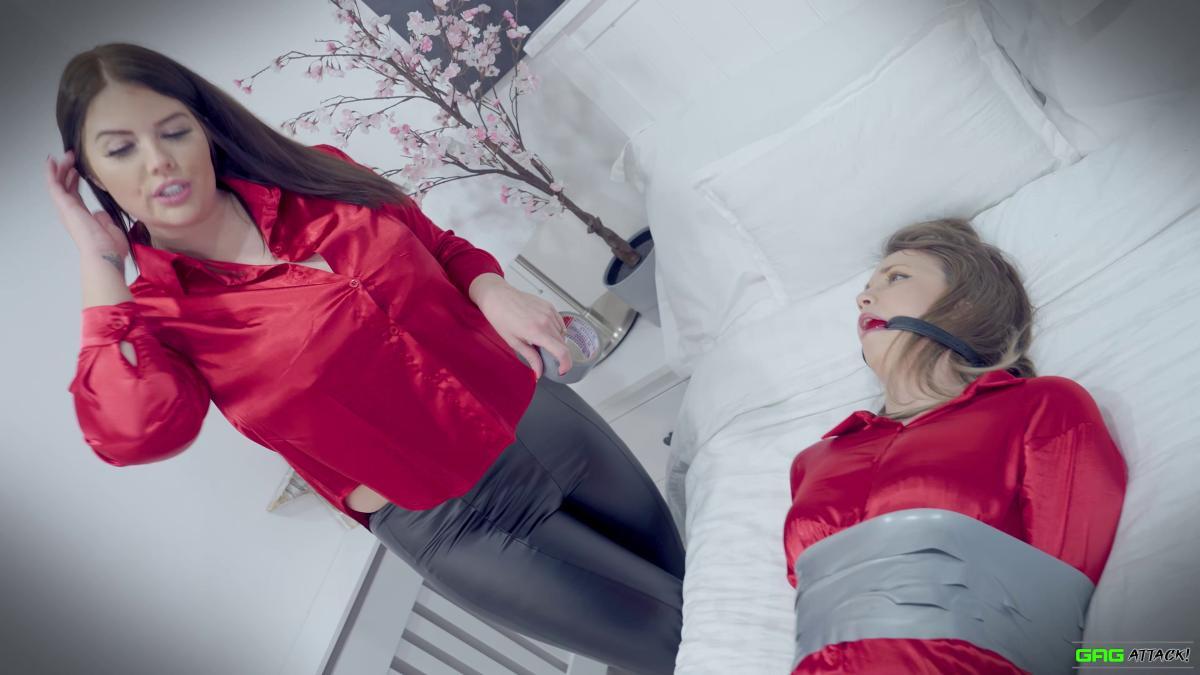 Gorgeous Terri Lou and Lil Missy UK both like the same guy and they are fighting for a date with him! To put her rival out of business, Terri binds and gags Lil Missy to keep her out of the way. Terri is rather turned on by bondage and gags and she also gags herself and gag kiss her bound and gagged friend! From Gag Attack Bondage at Clips4sale.