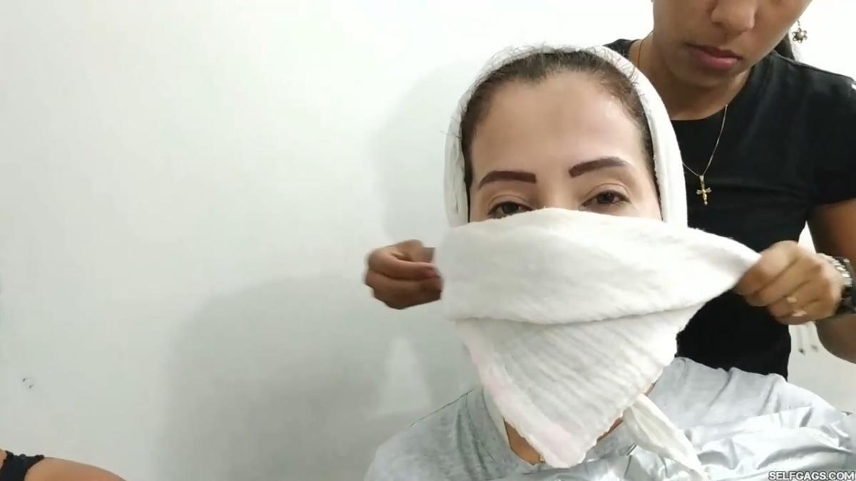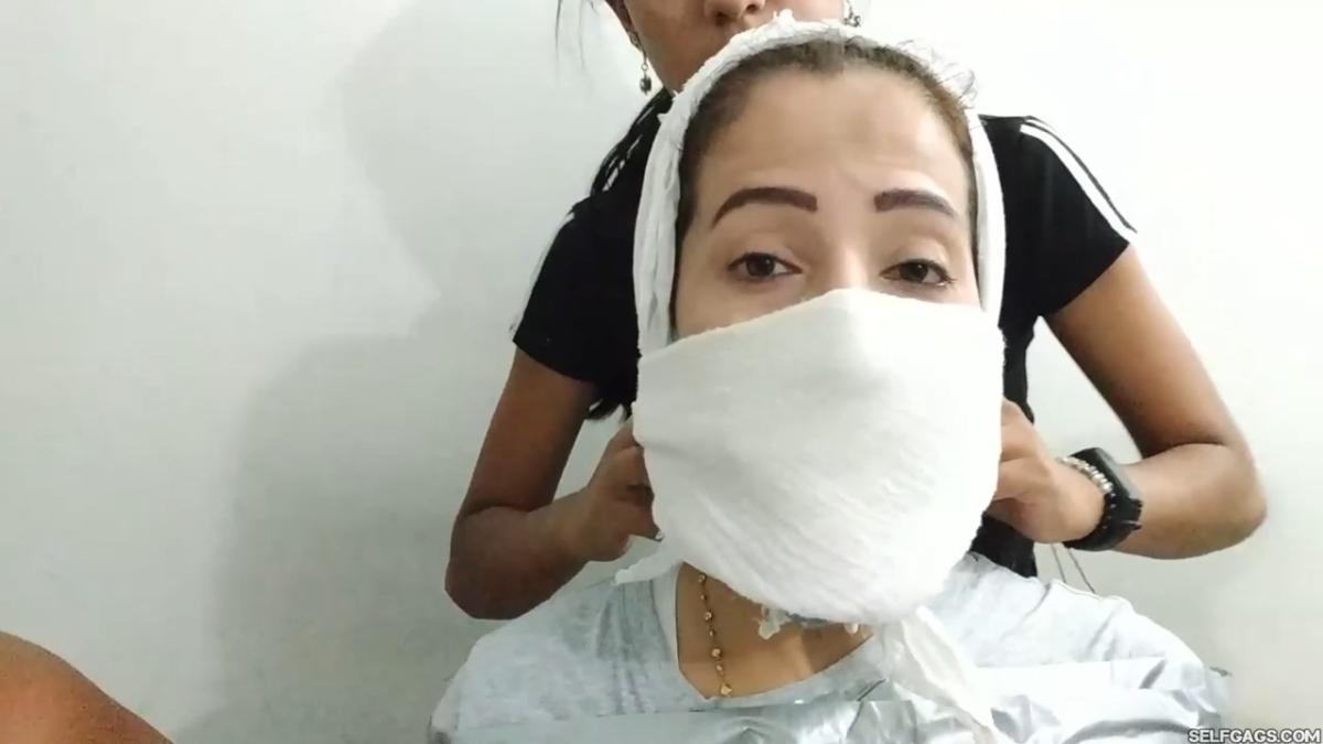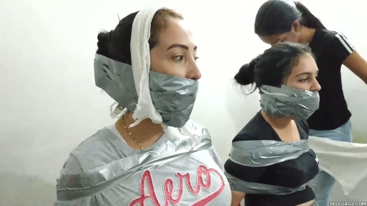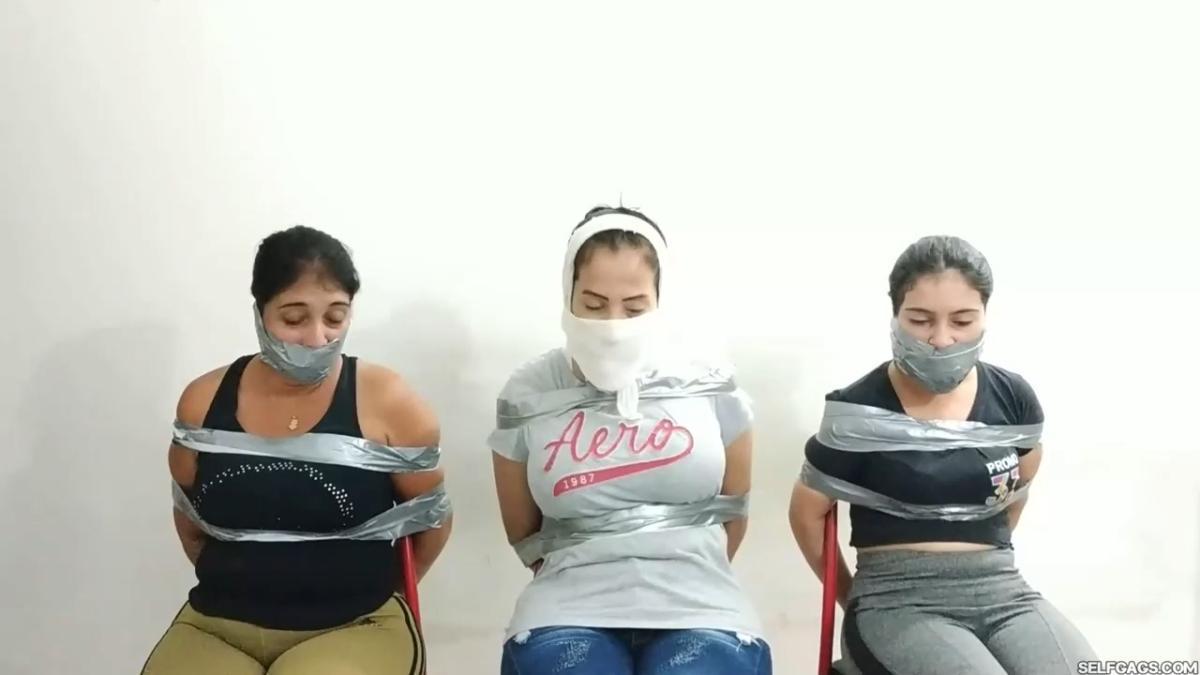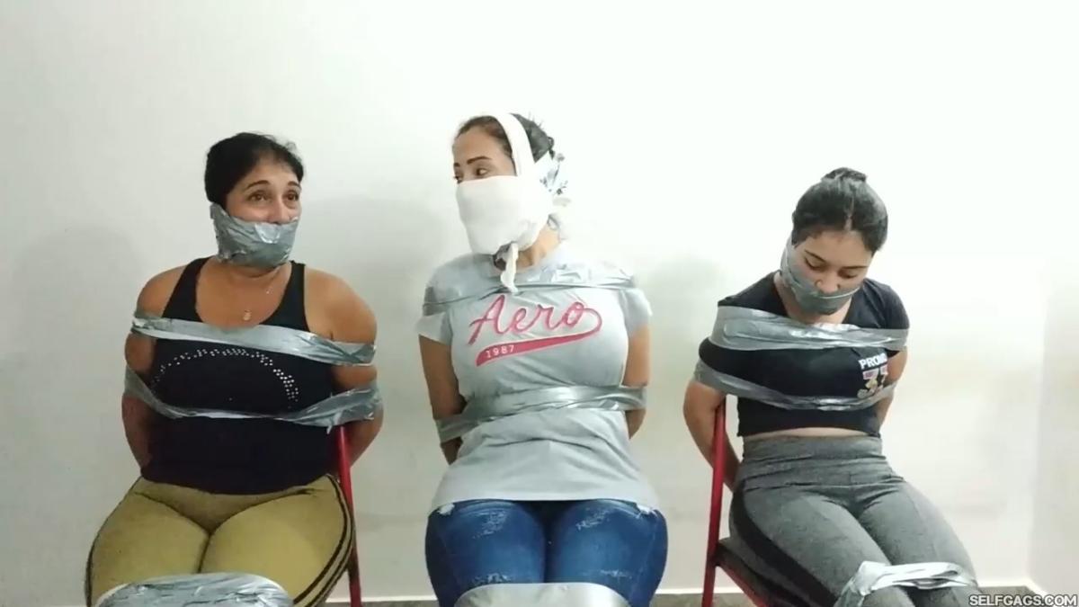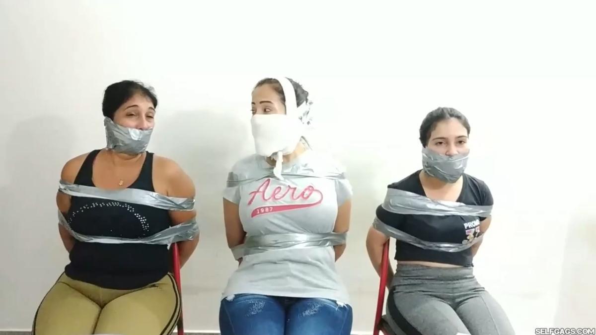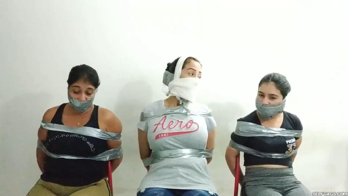 Laura Martinez wants to challenge her stepdaughter Maria to see who can make the biggest and most effective gag. Wendy and Katherine are the test models and they have already been duct taped to chairs. Laura decides to go first on Wendy but Katherine keeps taunting Laura and won’t shut up, so Laura tells Maria to gag Katherine in the meantime. From SELFGAGS studio on Clips4sale.