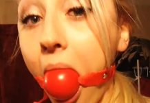The ball-gagged slave girl (Barby Luna) has her arms and legs glued with duct tape as she is made to work her way into the living room with Mistress Penelopé Garcia by her side. Penelopé tells her slave to position herself in front of the sofa. The mistress rests her shoe-clad feet on her slave’s back while enjoying a cigarette. Then she takes off her shoes and socks, puts the socks into one of the shoes, and tapes it to her slave’s face. Penelopé spanks the ass of her tape-bound slave and rests her feet on her back again, using her as her personal human footrest! From SELFGAGS Clips4sale studio.